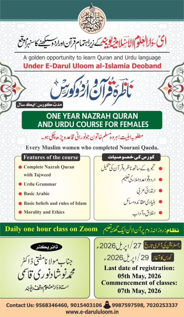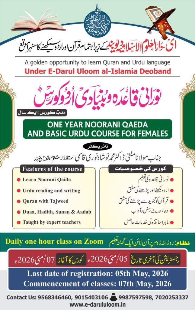 E-Darul Uloom al-Islamia Deoband’ is an online institute of religious learning, offering an opportunity to acquire religious education from the comfort of home. Knowledge is the most valuable asset of human being. The first verse of the Holy Quran that was revealed to our Prophet (PBUH) begins with the word iqra’ which means ‘to read’. This clearly indicates the significance of seeking knowledge, and this is the reason Muslims have always paid special attention to education irrespective of gender. They established schools and seminaries; wrote books; nurtured and produced numerous scholars who created such a brilliant history that the world is unable to produce their examples.
