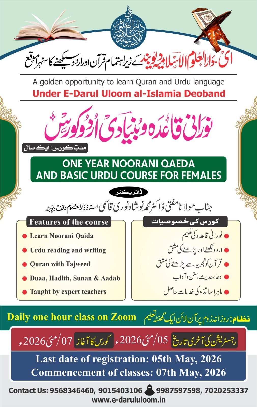 3. Basic Urdu and Nazrah Quran Course for Women: